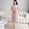 Váy tay bo dài ấm áp che chắn người mặc khỏi thời tiết lạnh. Đặc biệt, phần cổ xẻ V thanh thoát kết hợp bèo vai điệu đà dễ dàng làm xiêu lòng bất cứ cô gái bánh bèo nào.